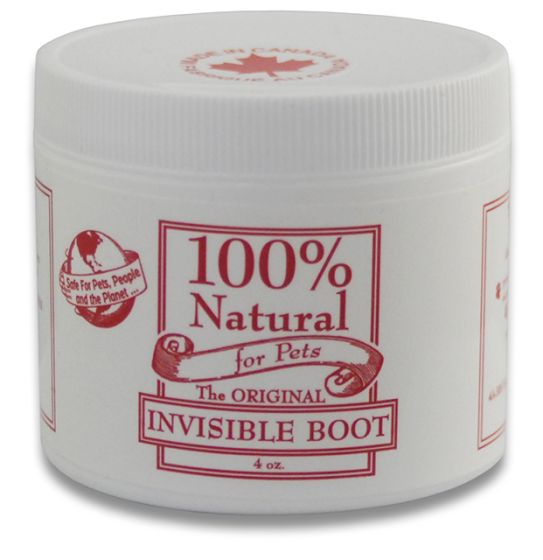The 100% Natural Invisible Boot is a non-toxic cream that protects pads from cold, salt, ice and snow. Completely natural and lickable, the invisible shield soothes and moisturizes chapped and cracked pads.