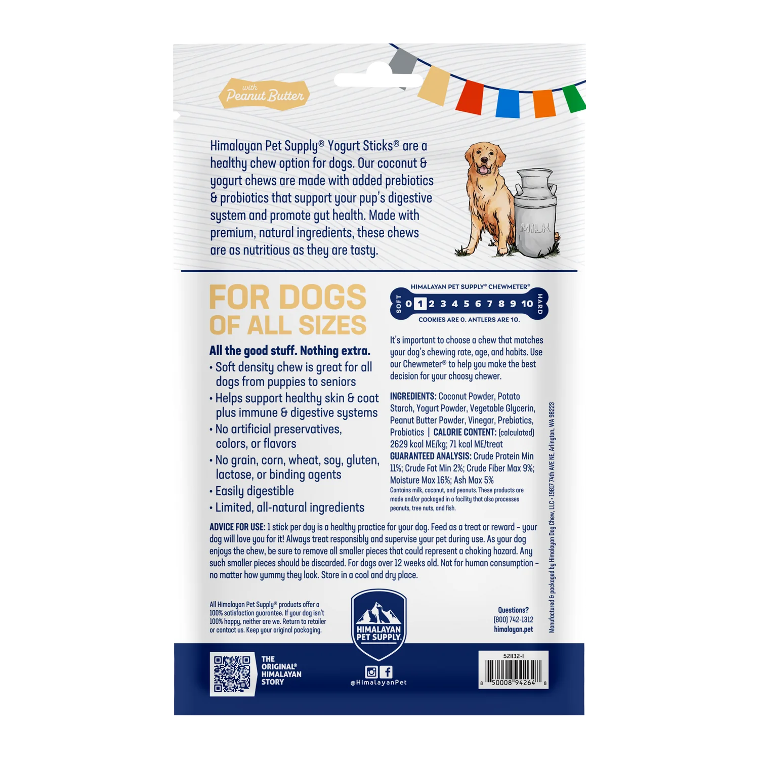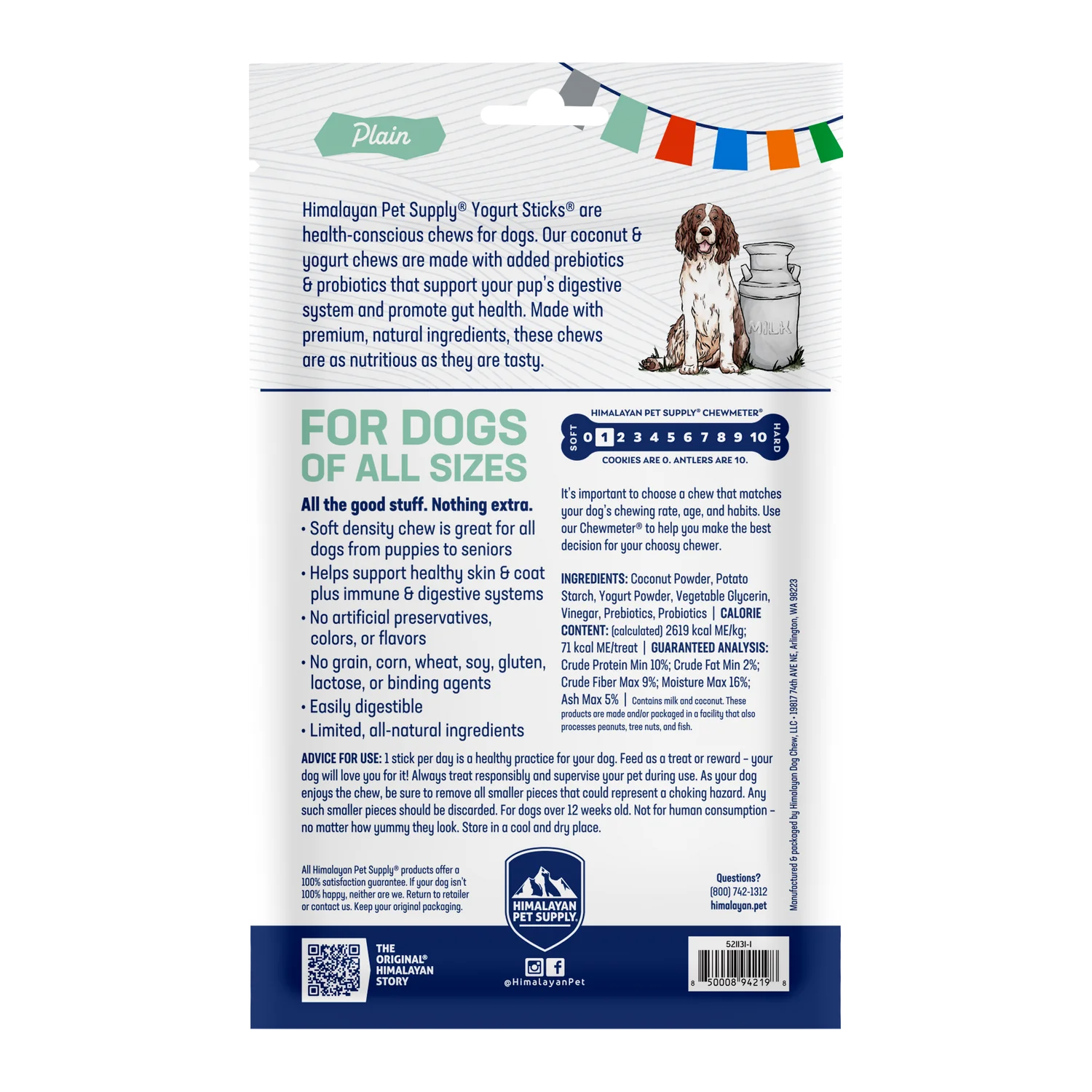 Yogurt Sticks® are a health and wellness treat for dogs. These health-conscious coconut & yogurt treats are loaded with Prebiotics and Probiotics that strengthen your pup’s gut health and support building a balanced digestive system. They are made with the finest natural ingredients, no artificial flavors or preservatives, and are lactose, grain, corn, soy, and gluten-free. These treats are as nutritious as they are tasty.