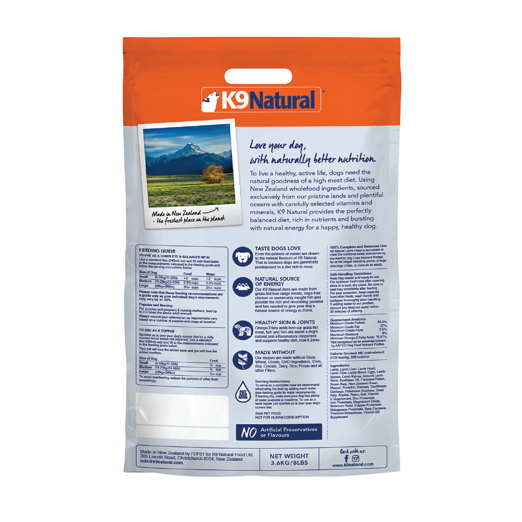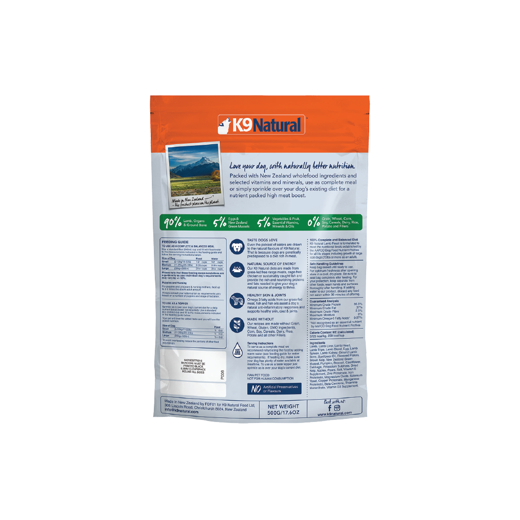 K9 Natural Lamb Feast Freeze-Dried Dog Food - 4 Sizes