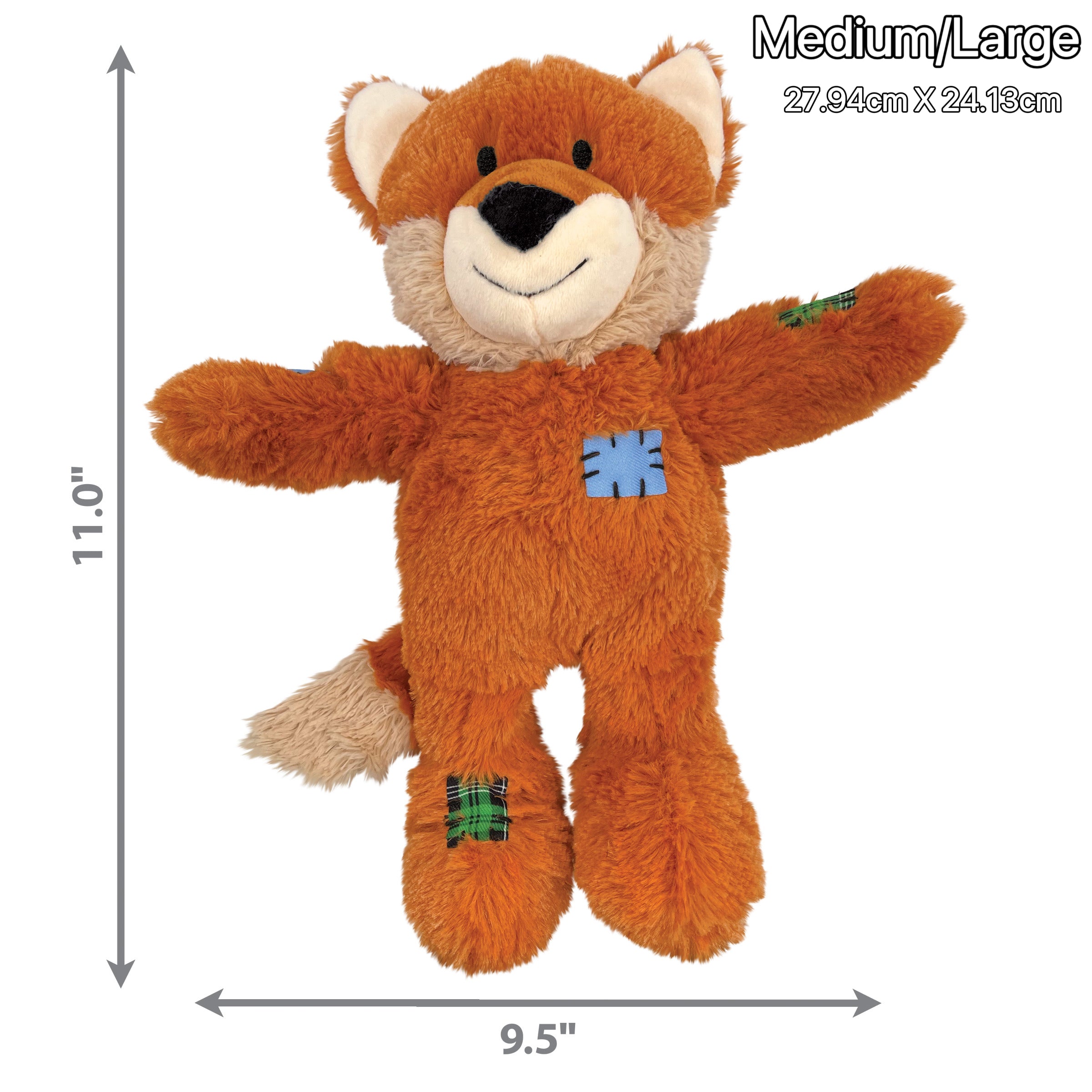 KONG Wild Knots Fox is soft and cuddly on the outside yet durable and strong on the inside thanks to a rope skeleton that satisfies dogs’ natural instincts. Squeaks extend the forest animal frolics while minimal stuffing means less mess. Plush body is great for snuggling.