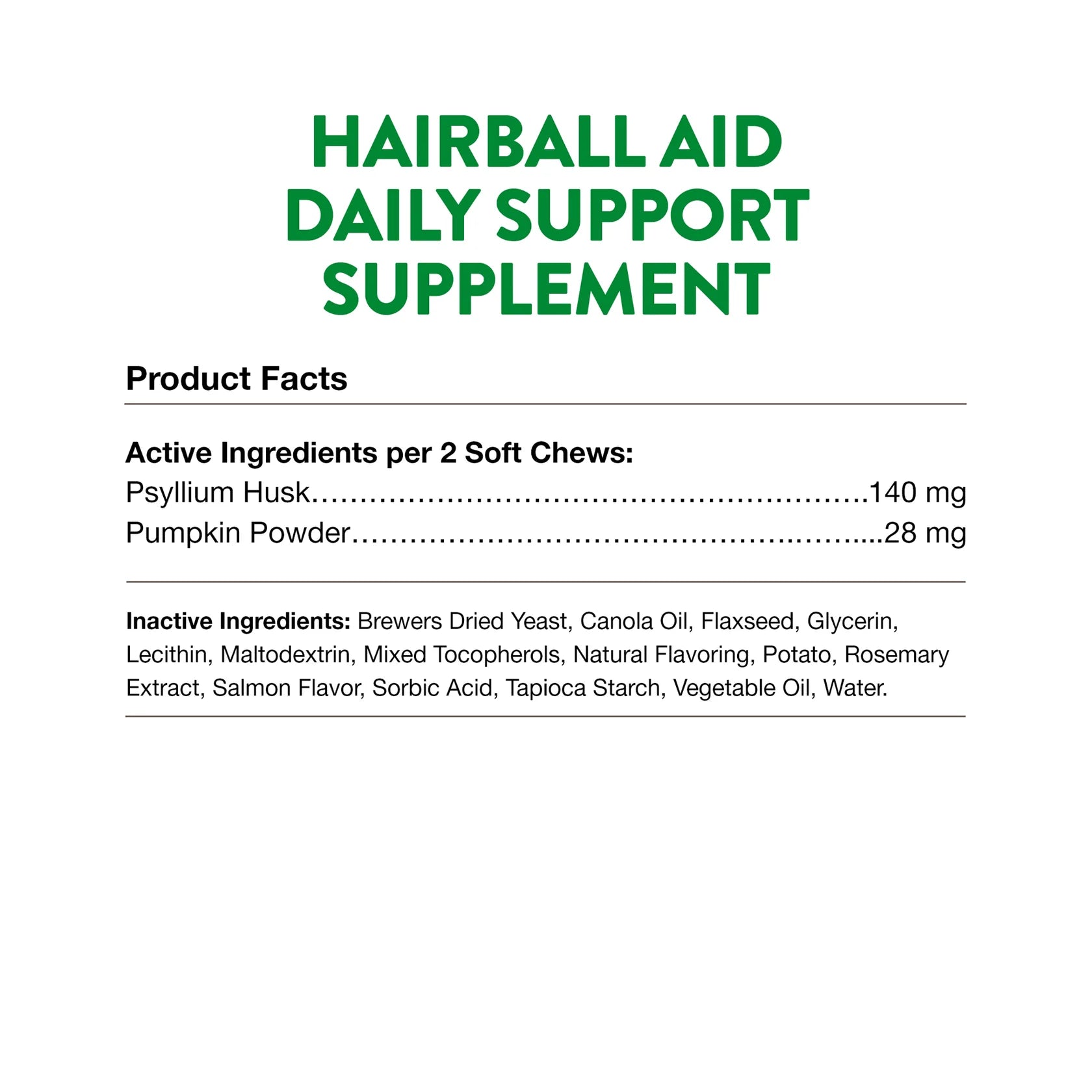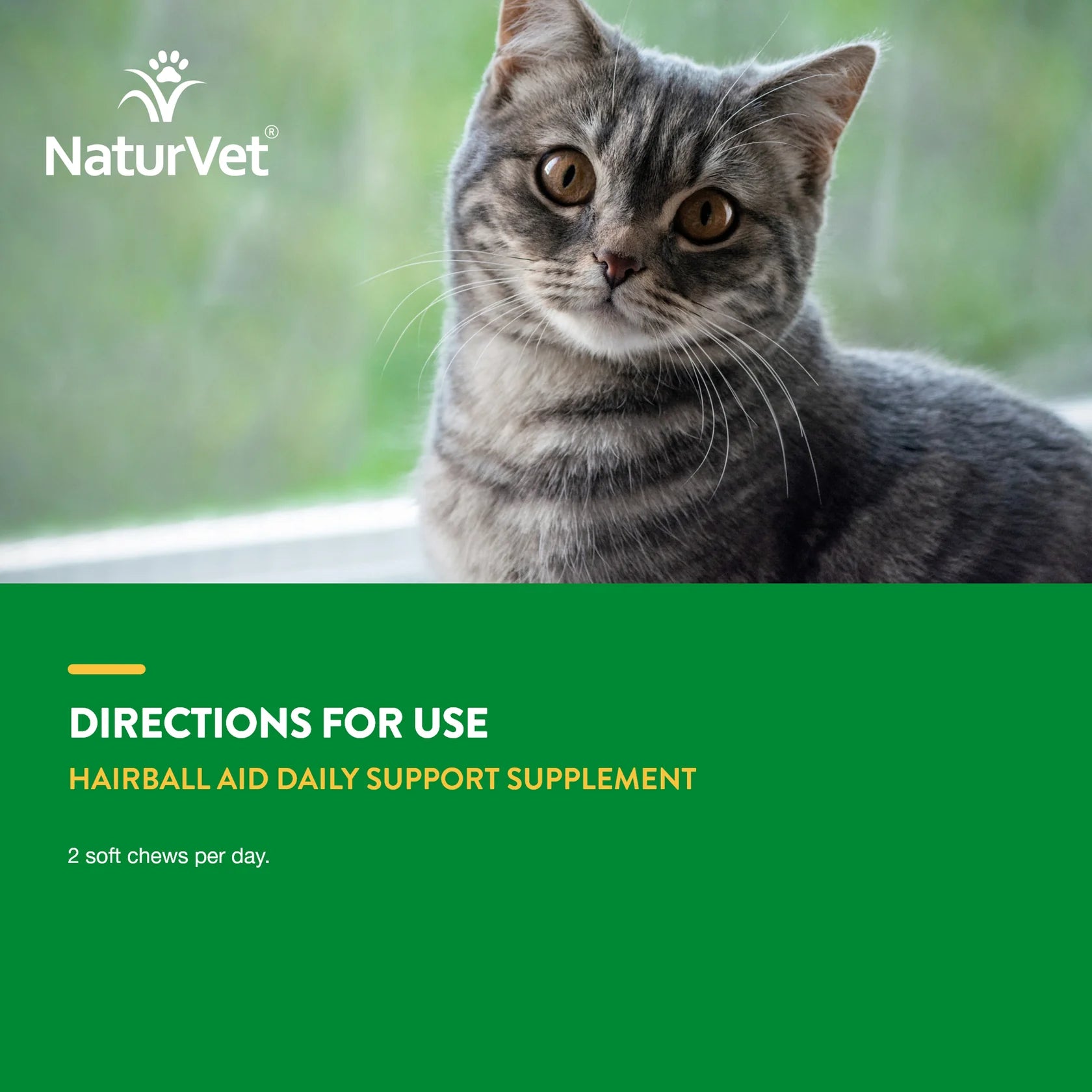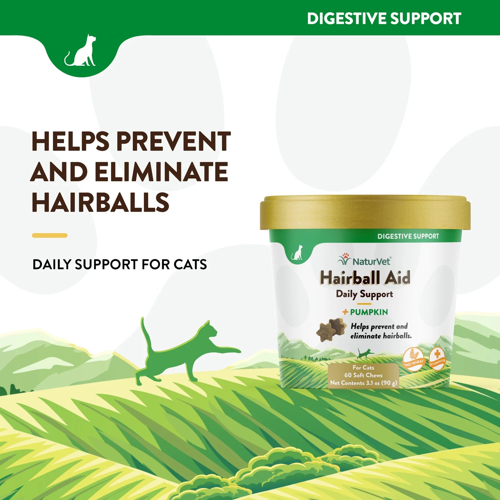 For use in cats over the age of 12 weeks. NaturVet Hairball Aid Plus Pumpkin Soft Chews help eliminate and prevent hairballs when used on a daily basis.
