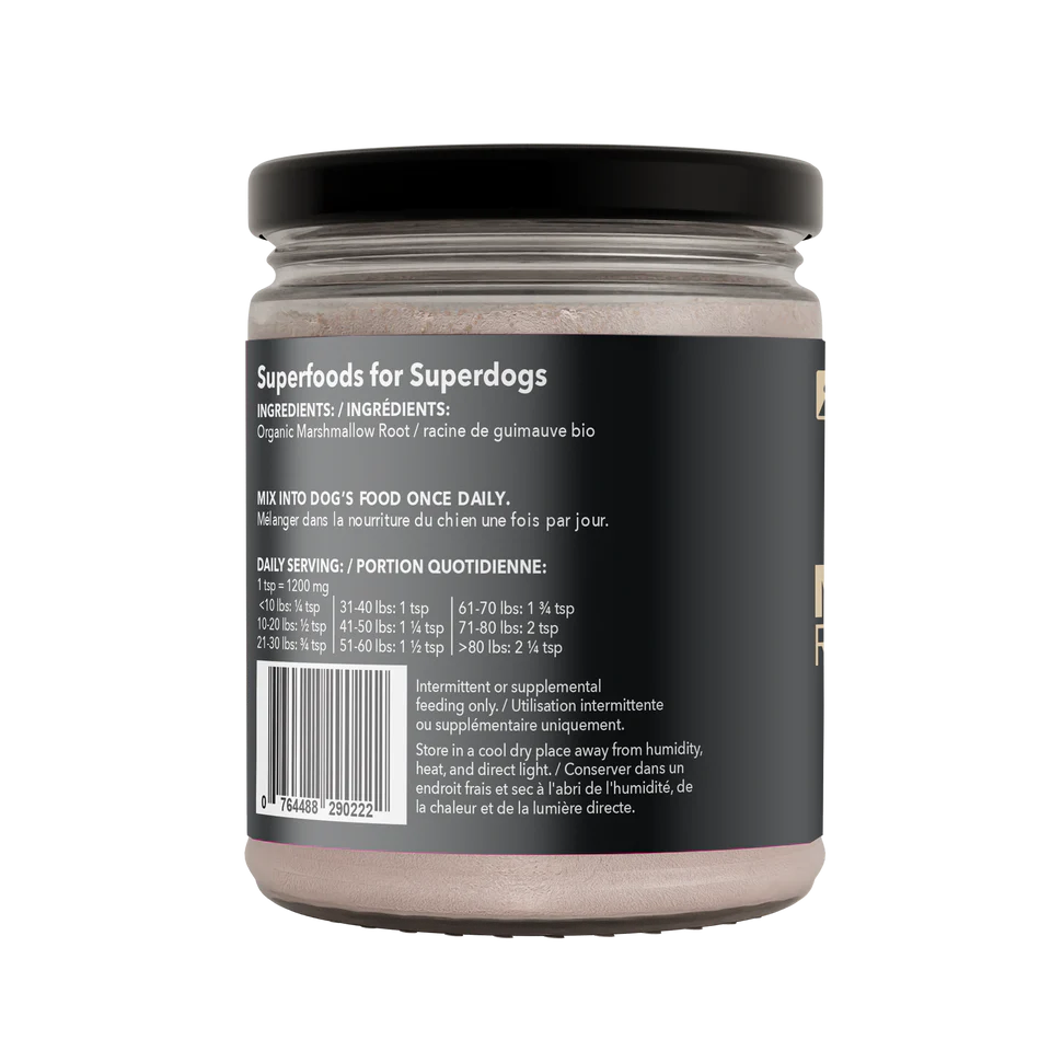 Get your dog back to feeling their best with Marshmallow Root Powder! This all-natural superfood is packed with properties known to help reduce inflammation throughout your dog's body. It may help alleviate symptoms of gastroesophageal reflux disease (GERD), irritable bowel syndrome (IBS), and ulcers, giving them the relief they need. With Marshmallow Root Powder, you can give your dog the soothing and protective digestive tract they deserve!