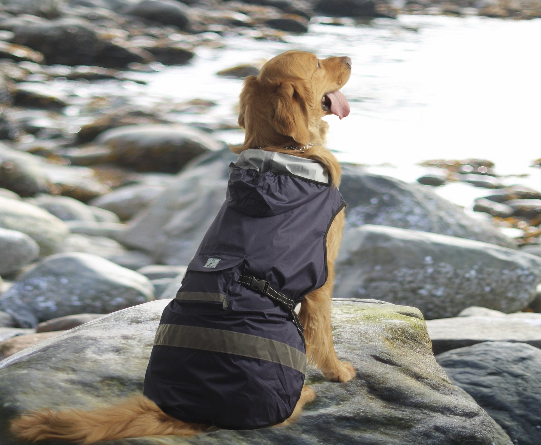 Keep your dog dry and protected on a rainy day with our reflective raincoat.