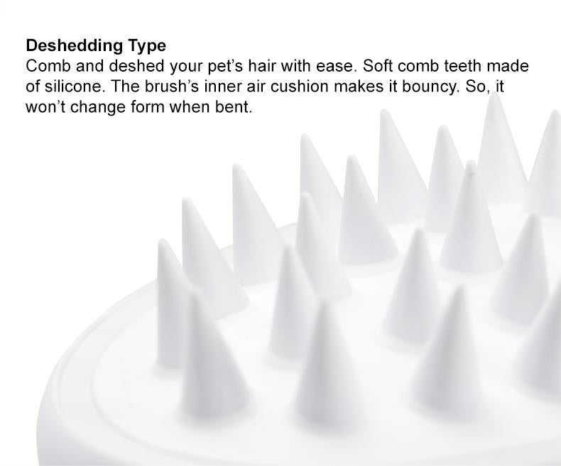 Comb and deshed your pet’s hair with ease. Soft comb teeth made of silicone. The brush’s inner air cushion makes it bouncy. So, it won’t change form when bent.