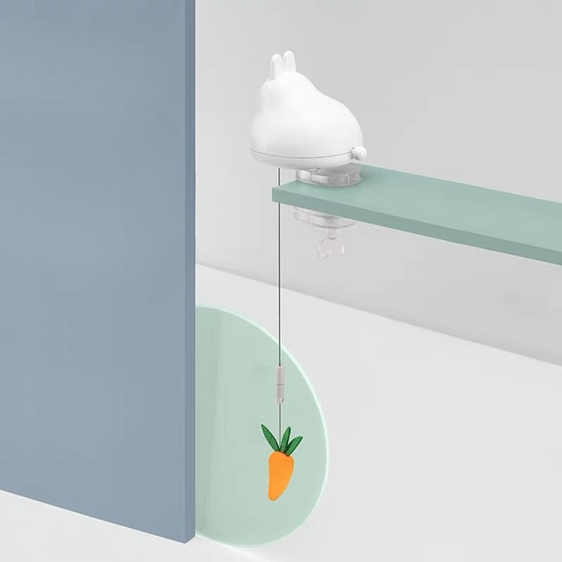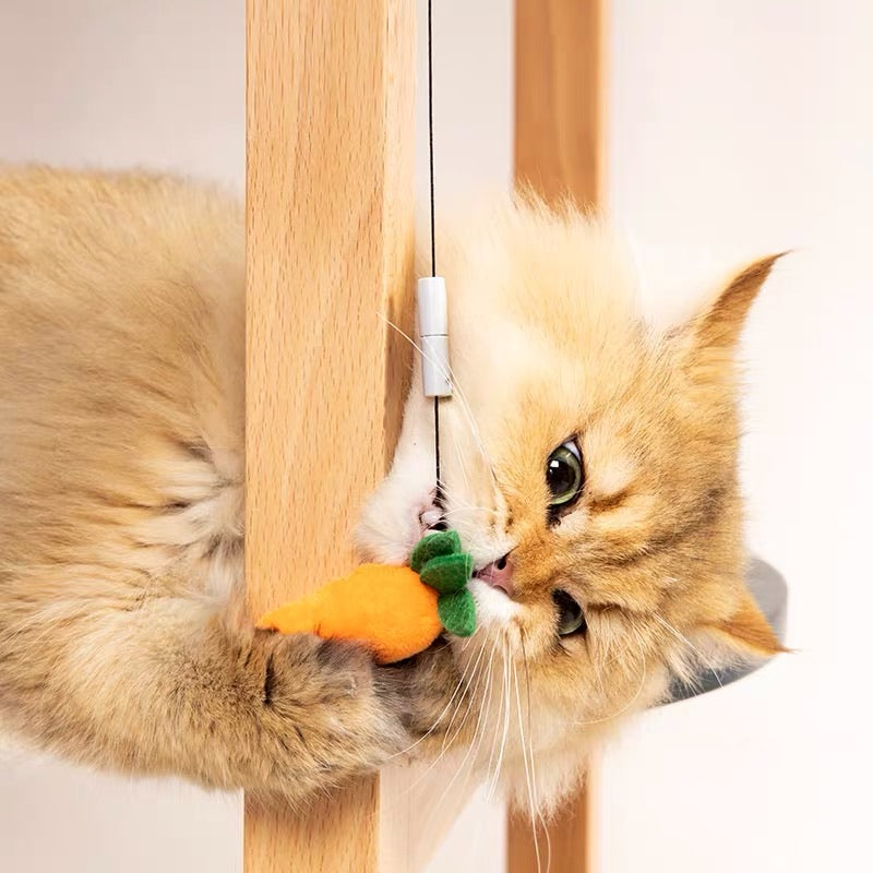 The hanging "cat bait" raises and lowers, catching the attention of your cat.