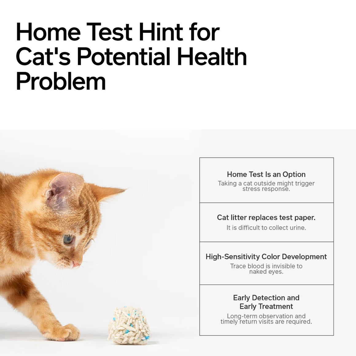 The minerals contained in bentonite will also affect the test results. Therefore, this product cannot be used with other types of cat litter.