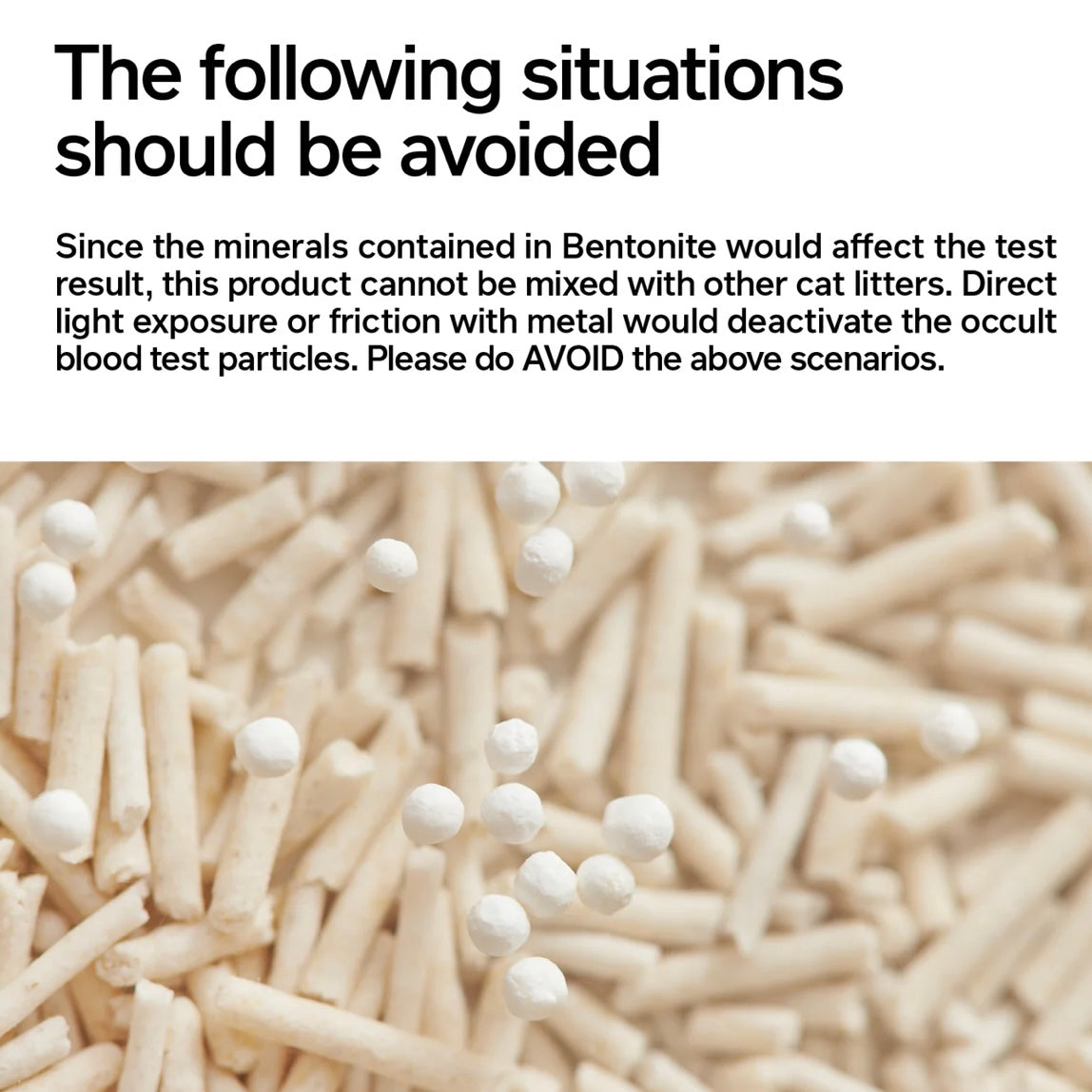 2. The minerals contained in bentonite will also affect the test results. Therefore, this product cannot be used with other types of cat litter.
