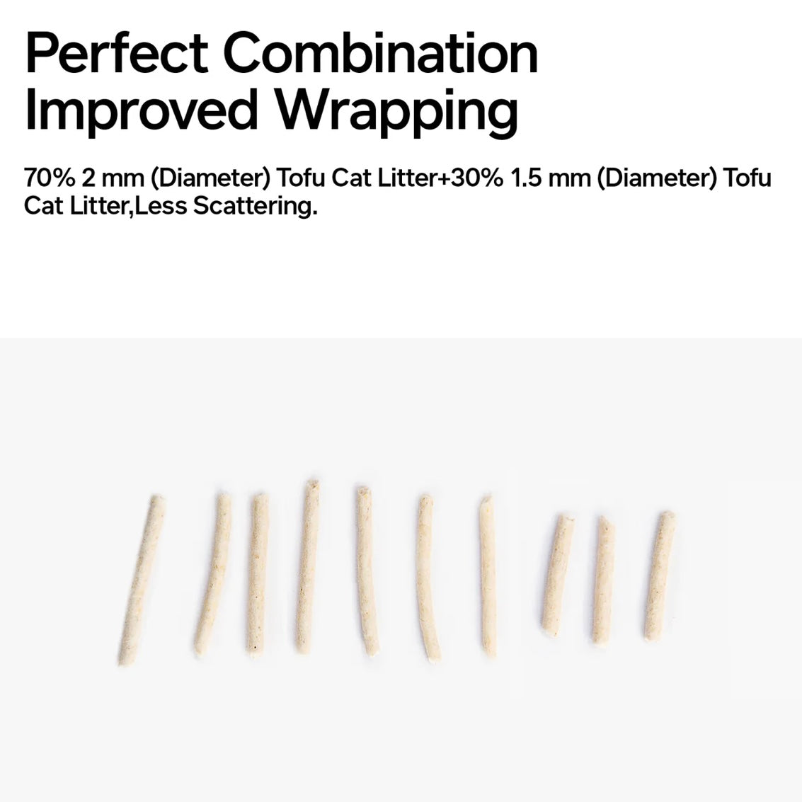 REDUCES litter tracking and IMPROVES fecal wrapping.