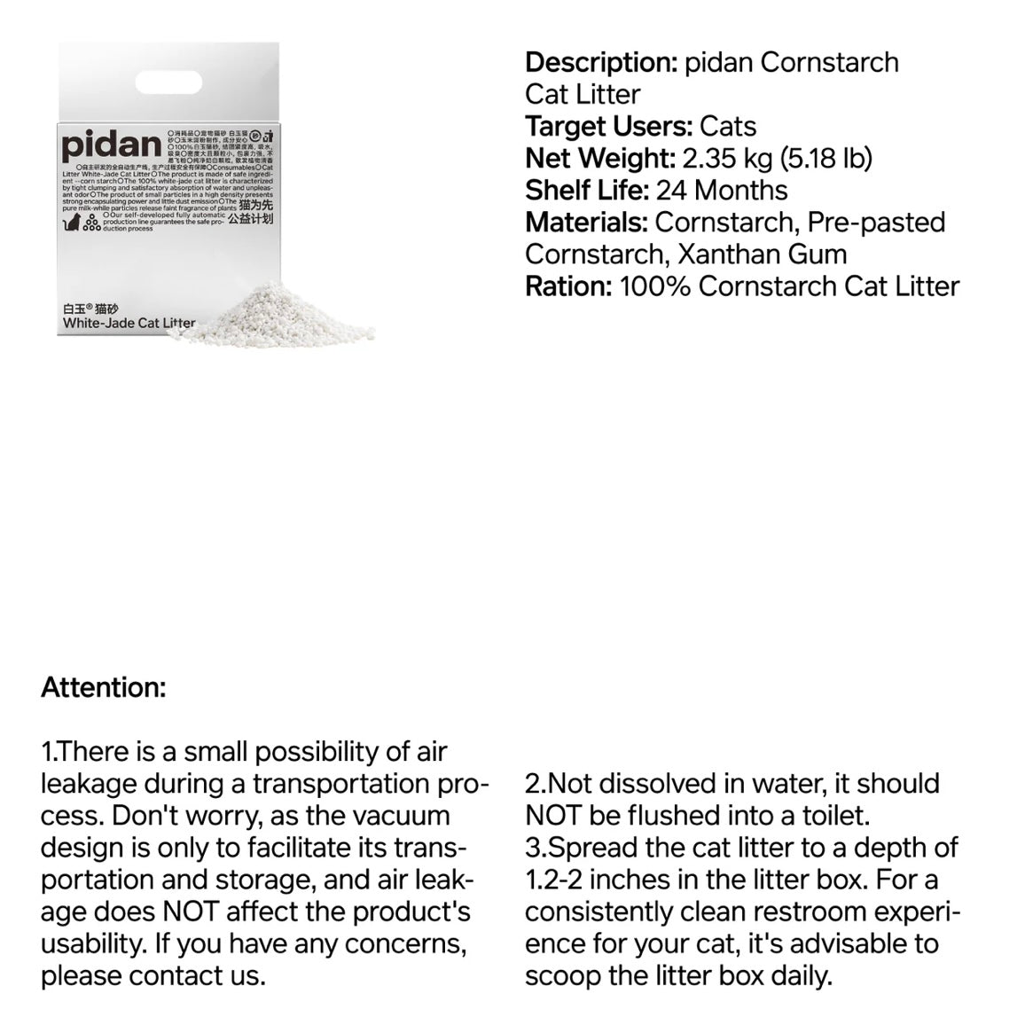 Pidan White-Jade(Cornstarch) Cat Litter
