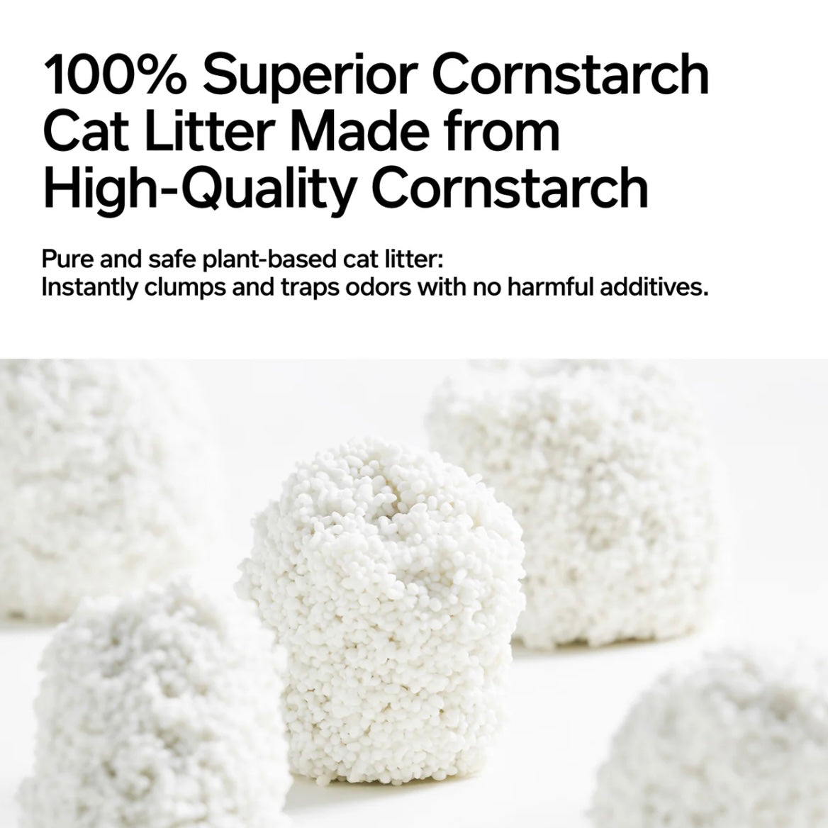 Pure and safe plant-based cat litter: Instantly clumps and traps odors with no harmful additives.