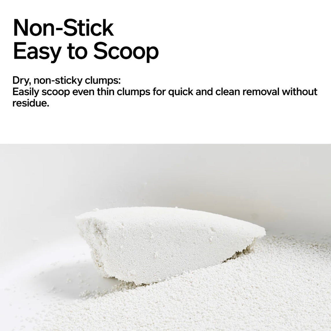 Dry, non-sticky clumps: Easily scoop even thin clumps for quick and clean removal without residue.