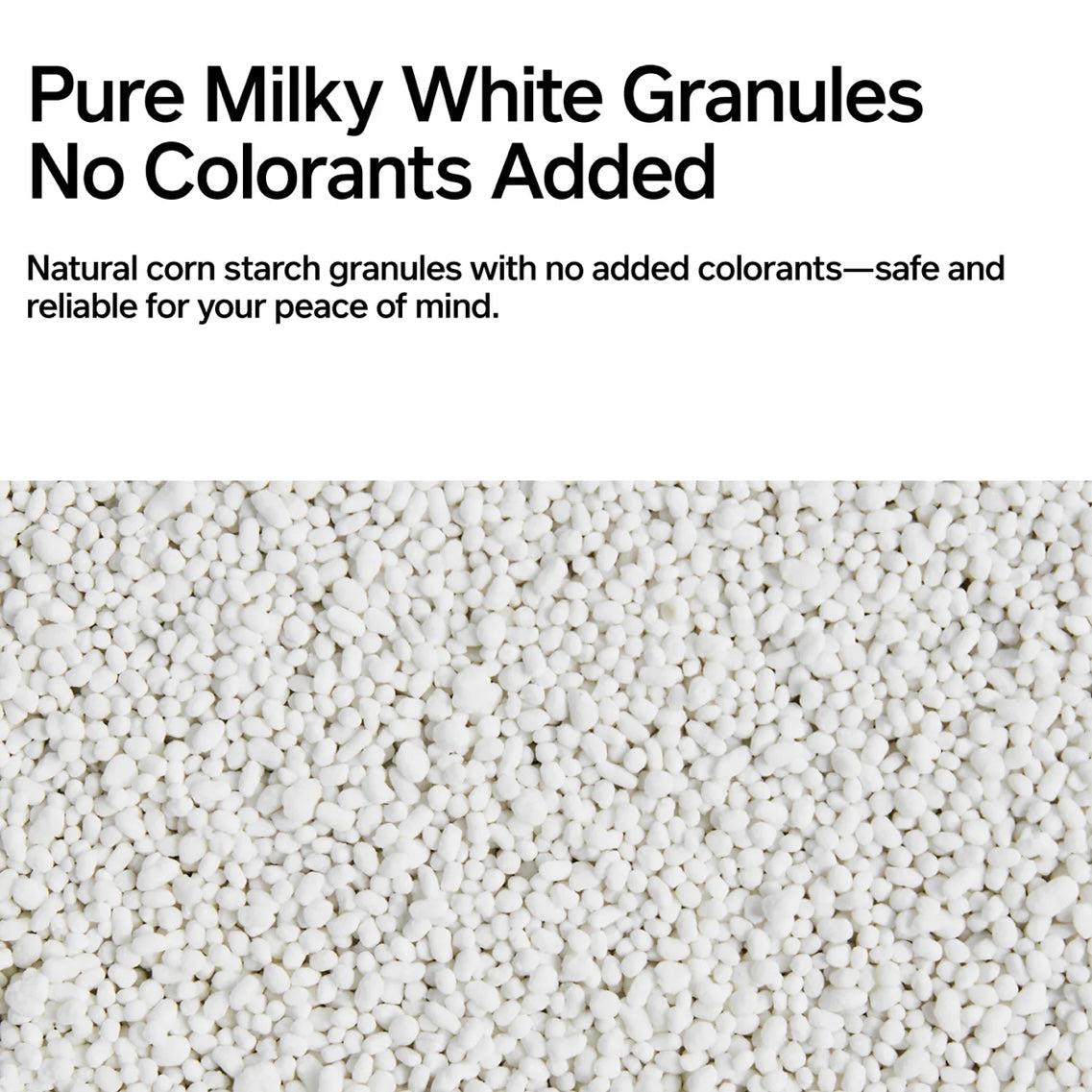 Natural corn starch granules with no added colorants—safe and reliable for your peace of mind.