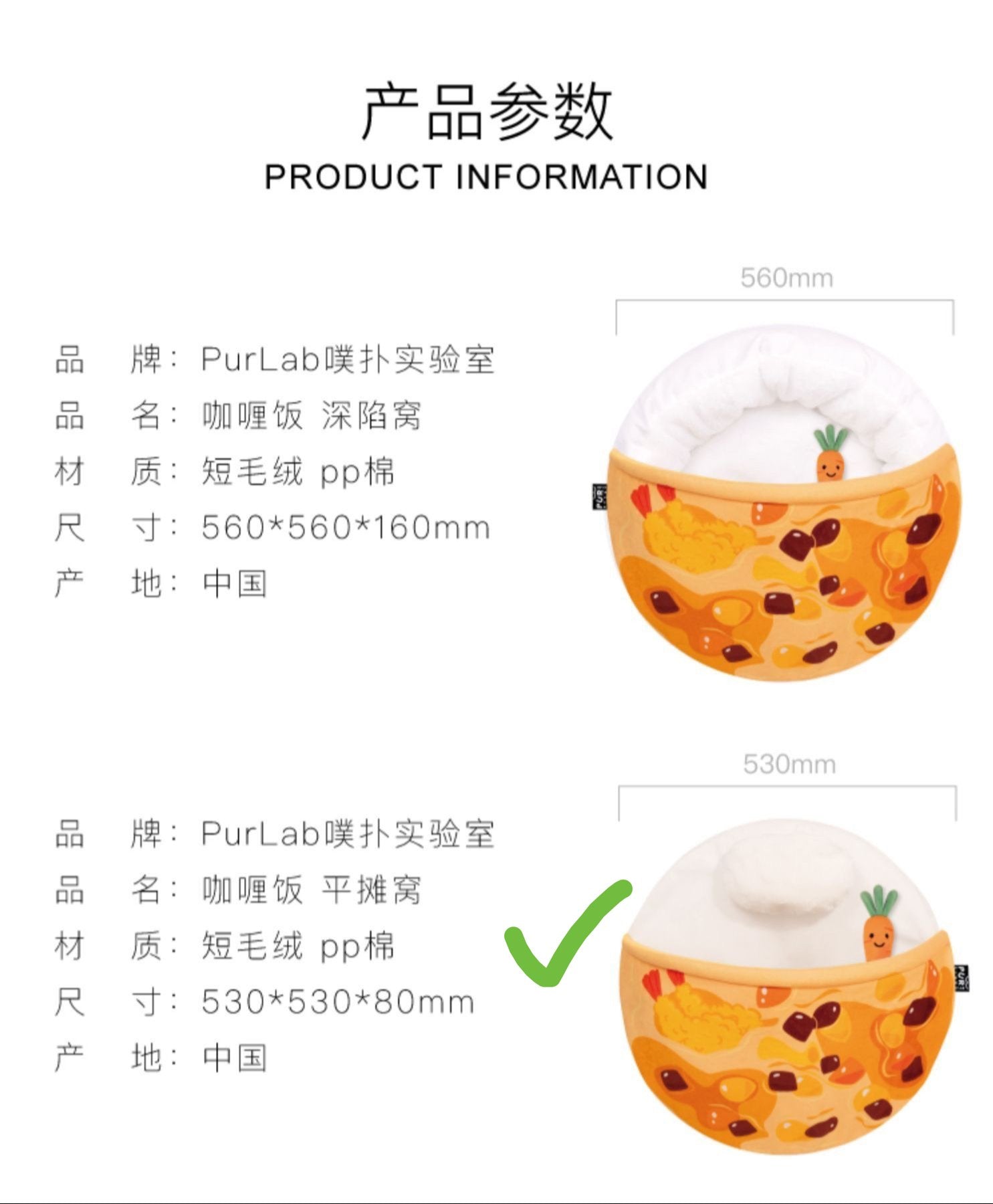 Sale -15% Product form PurLab Curry Rice Pet Bed with Pillow and Carrot Toy $28.04$32.99 Quantity Out of stock This item is a recurring or deferred purchase. By continuing, I agree to the cancellation policy and authorize you to charge my payment method at the prices, frequency and dates listed on this page until my order is fulfilled or I cancel, if permitted. Reviews 0 reviews Share with your friends Share WhatsApp Deel X Pin it Messenger Email Description Flat type with pillow 530×530×80cm