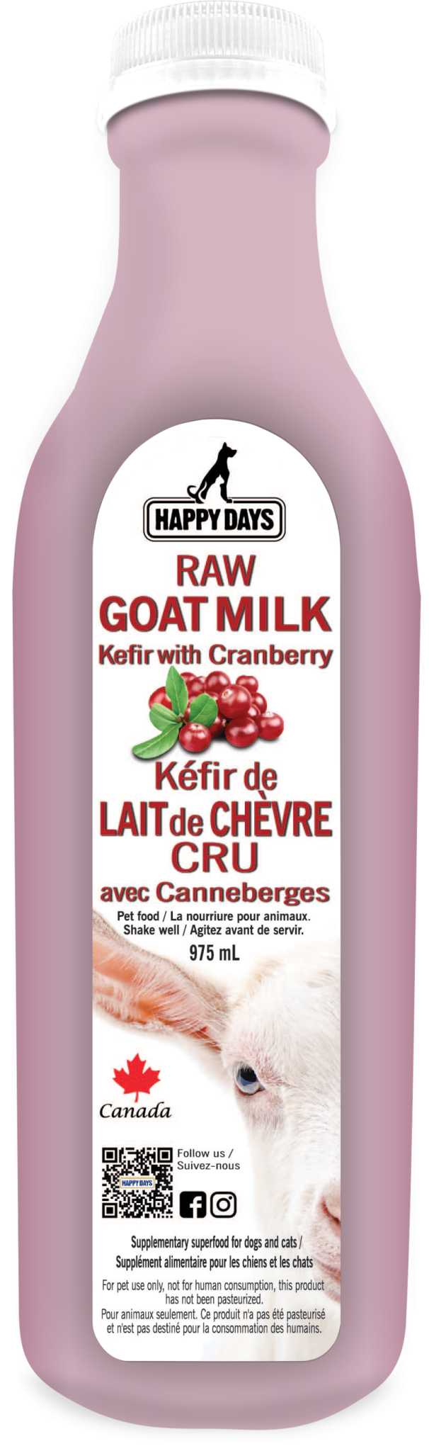 Happy Days Raw Goat Milk Kefir with Cranberry - 975ml