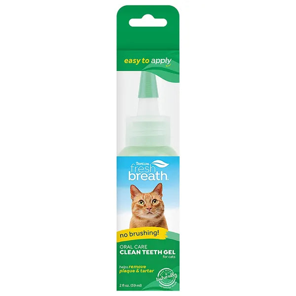 TropiClean Fresh Breath Oral Care Clean Teeth Gel for Cats supports your cat’s oral health and gives them fresh breath—no brushing required! This tasty mint-flavored gel helps safely and effectively remove plaque and tartar, all while freshening their breath.