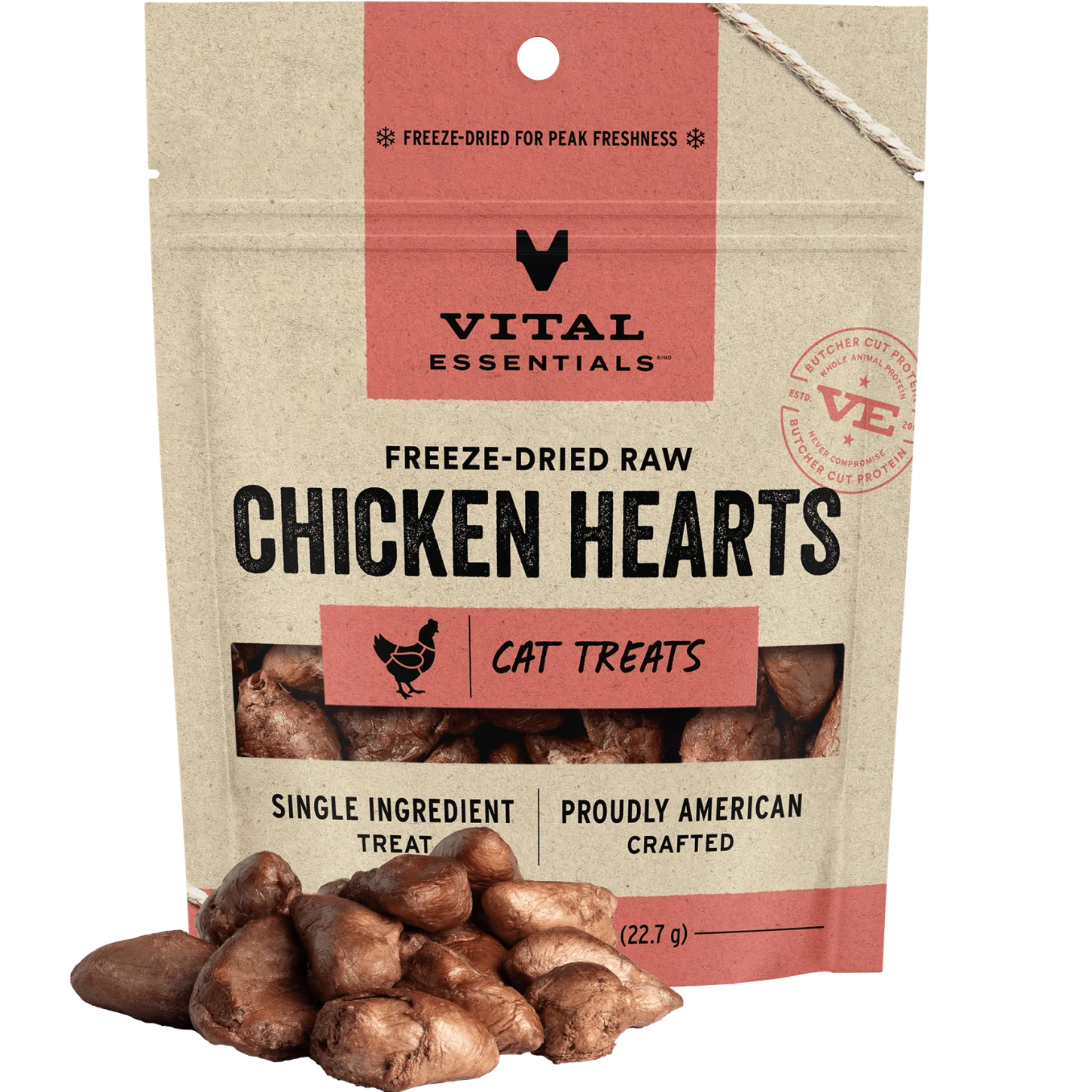 Vital Essentials Freeze-Dried Raw Protein Chicken Hearts Cat Treats - 22.7g/0.80z