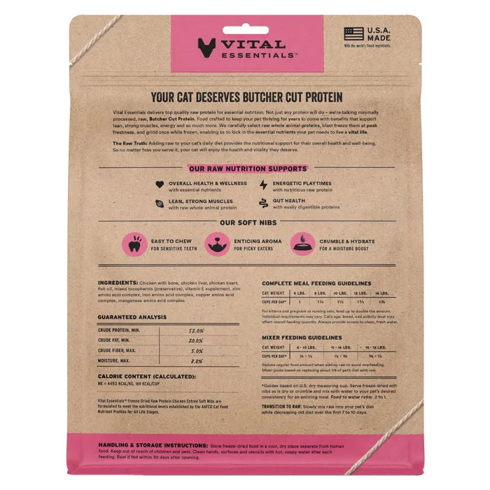 Vital Essentials Freeze-Dried Raw Chicken Entrée for Cats - Soft Nibs - 12oz