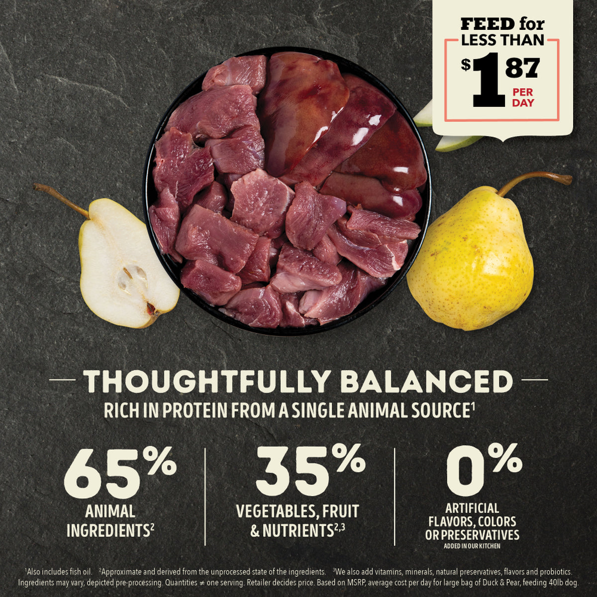 - Protein-rich duck is balanced with pears and vegetables to help support ideal body condition.