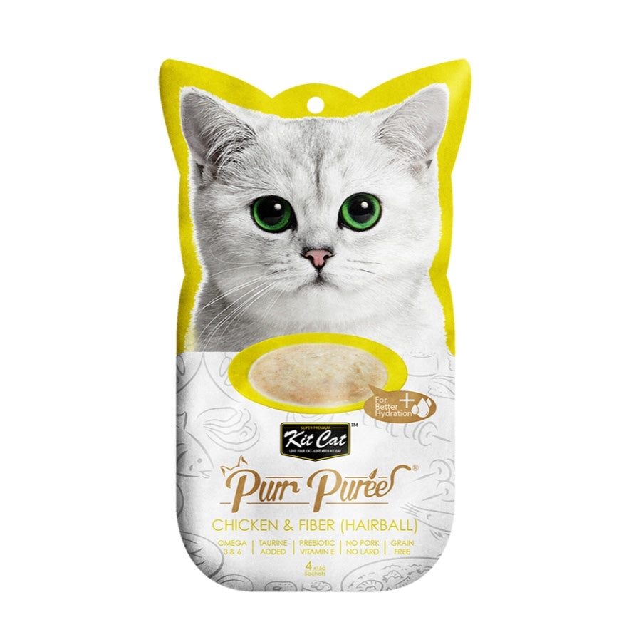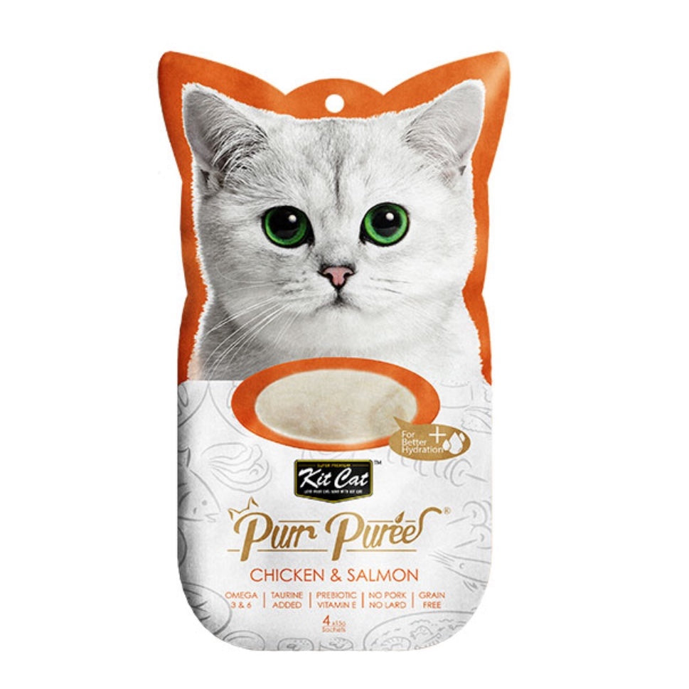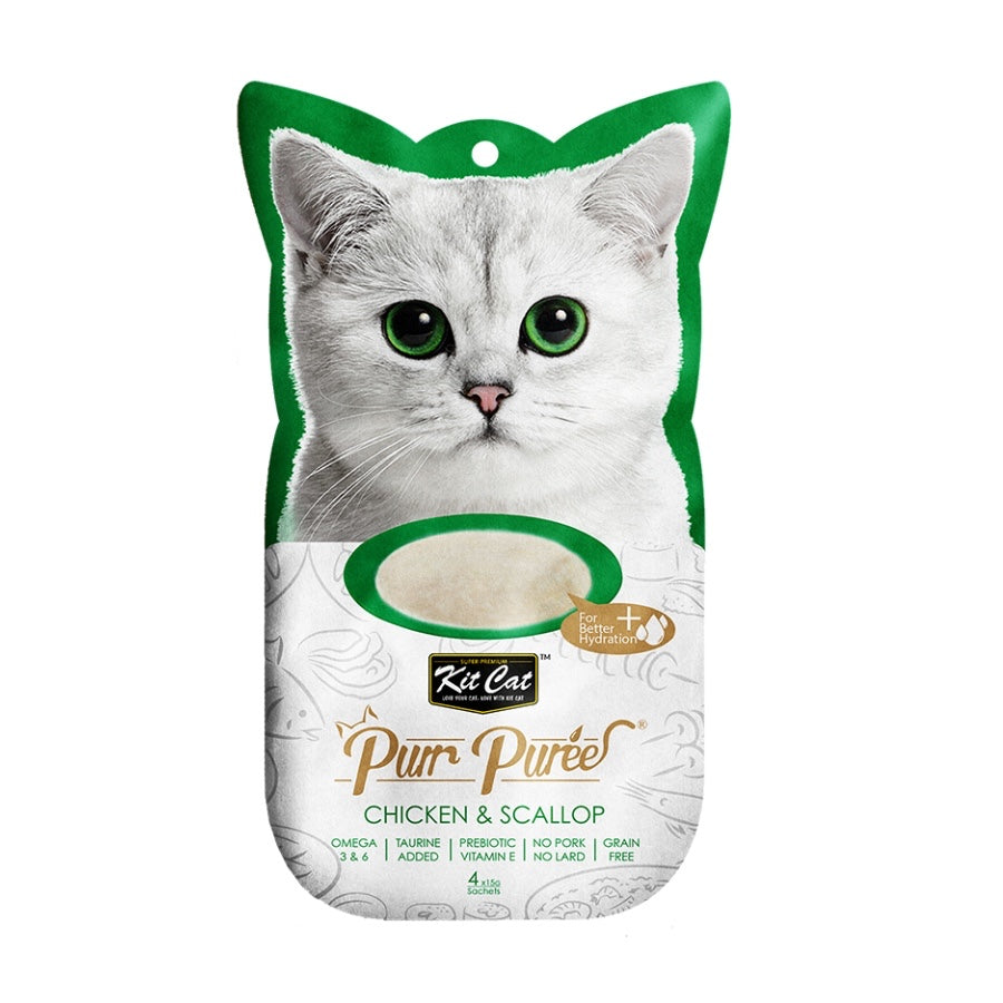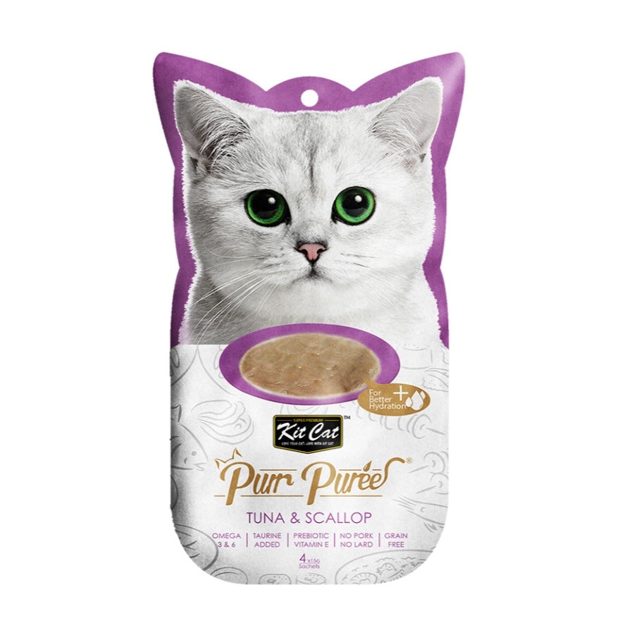Kit Cat Purr Puree 猫粮由爱猫人士的营养师研制,采用精心挑选的天然成分制成。这个食谱包含鸡肉或金枪鱼的光滑混合物。不添加色素或防腐剂,适合所有生命阶段的猫。无谷物、美味且 100% 纯天然——这将是您的猫最难以抗拒的理想零食。