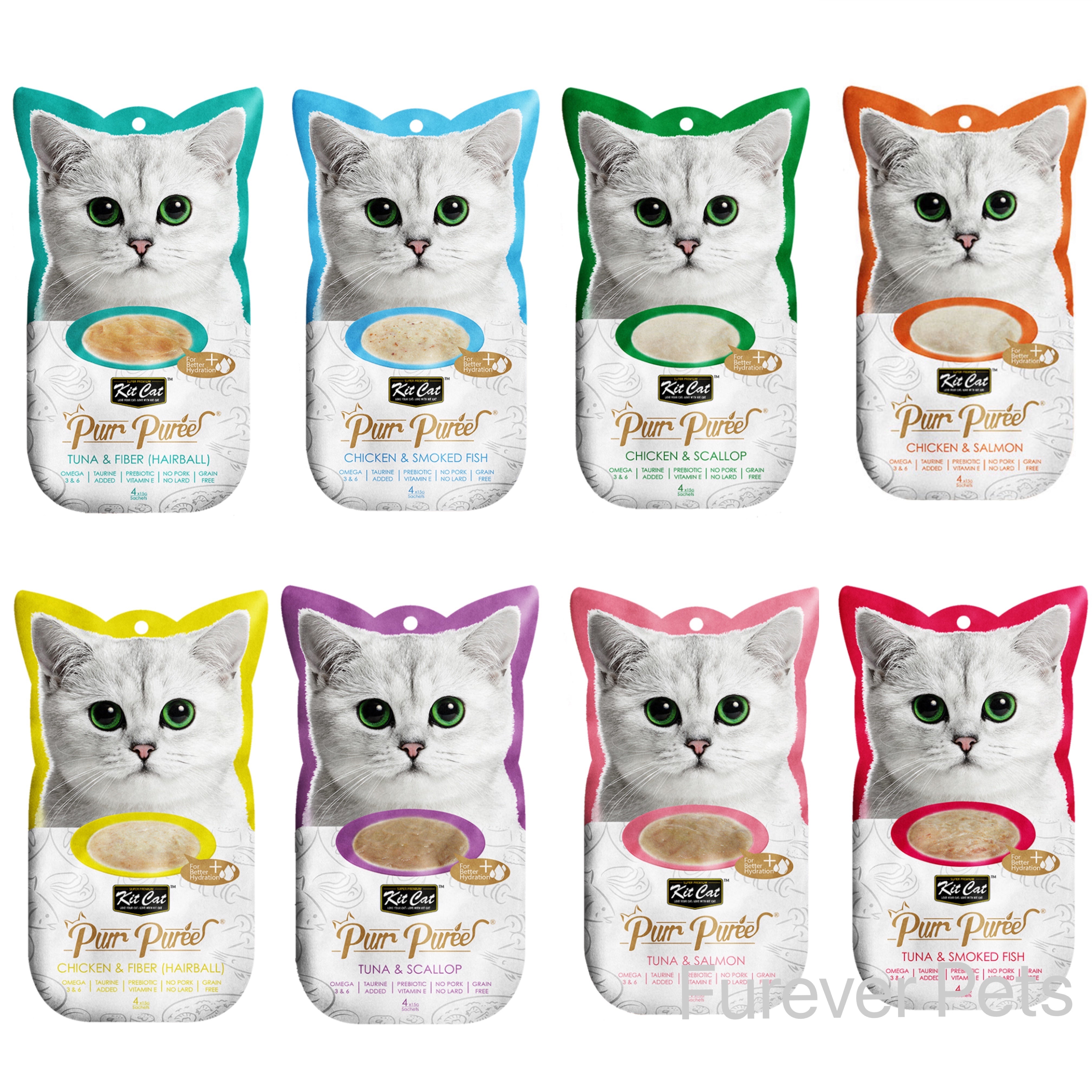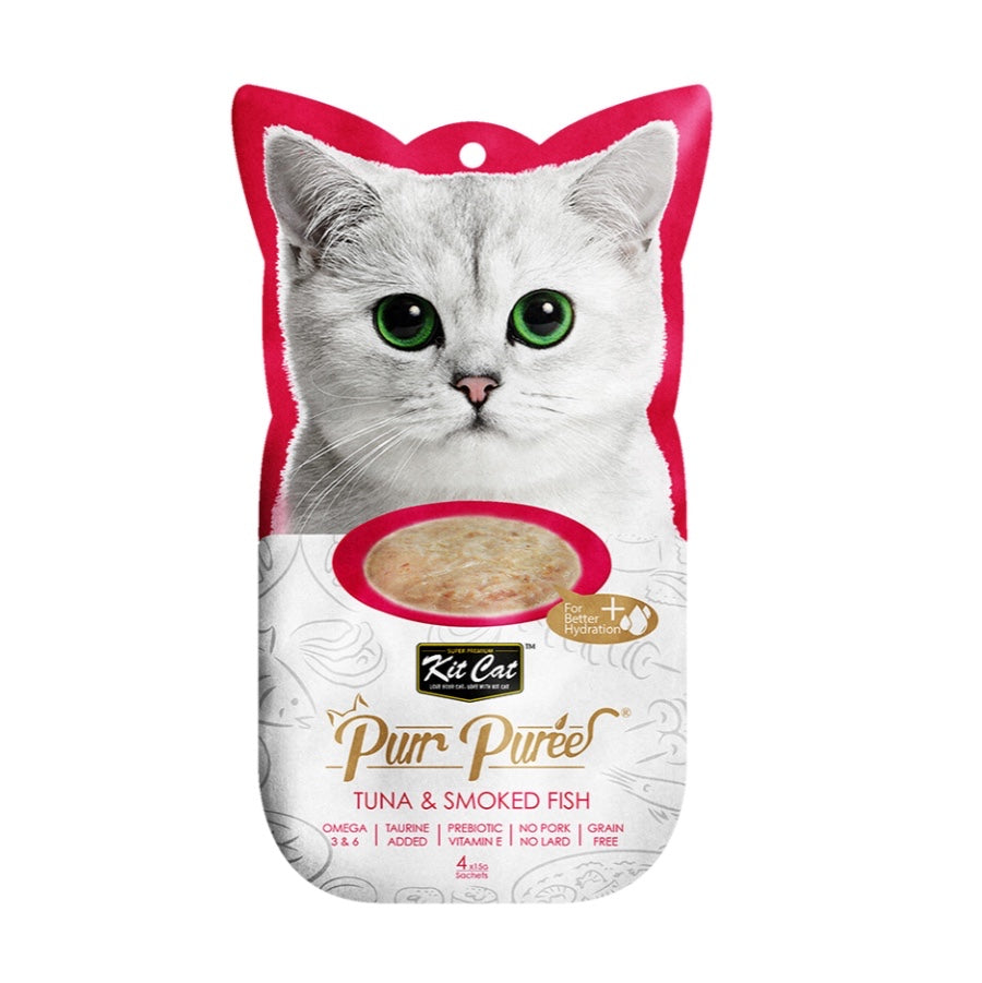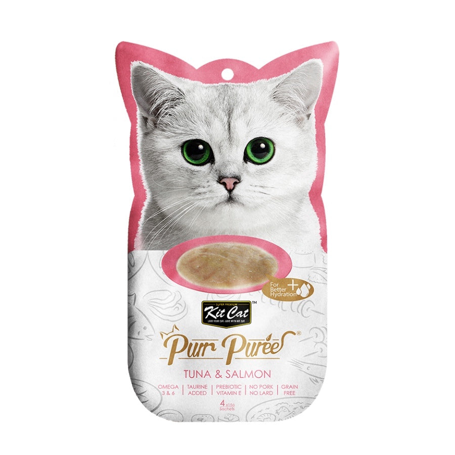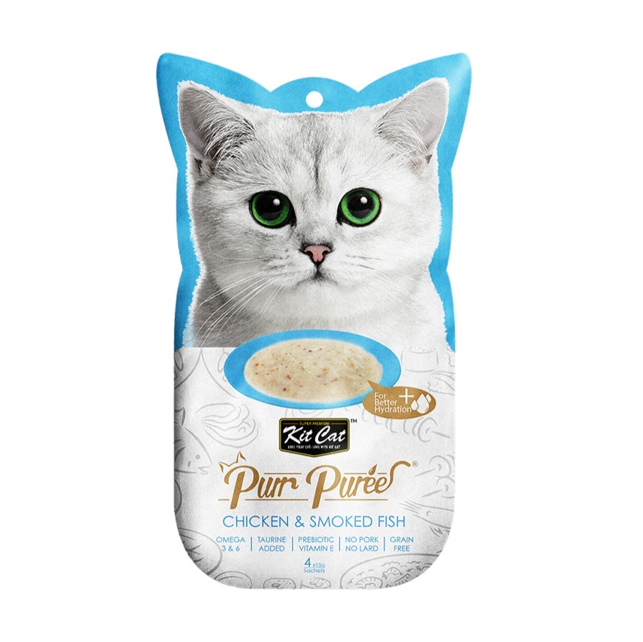 Kit Cat Purr Puree 猫粮由爱猫人士的营养师研制,采用精心挑选的天然成分制成。这个食谱包含鸡肉或金枪鱼的光滑混合物。不添加色素或防腐剂,适合所有生命阶段的猫。无谷物、美味且 100% 纯天然——这将是您的猫最难以抗拒的理想零食。