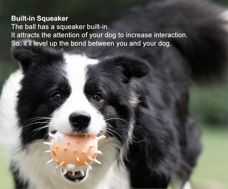 - 球有一个内置的吱吱声。它吸引了您的狗的注意力以增加互动。所以,它会加强你和你的狗之间的联系。