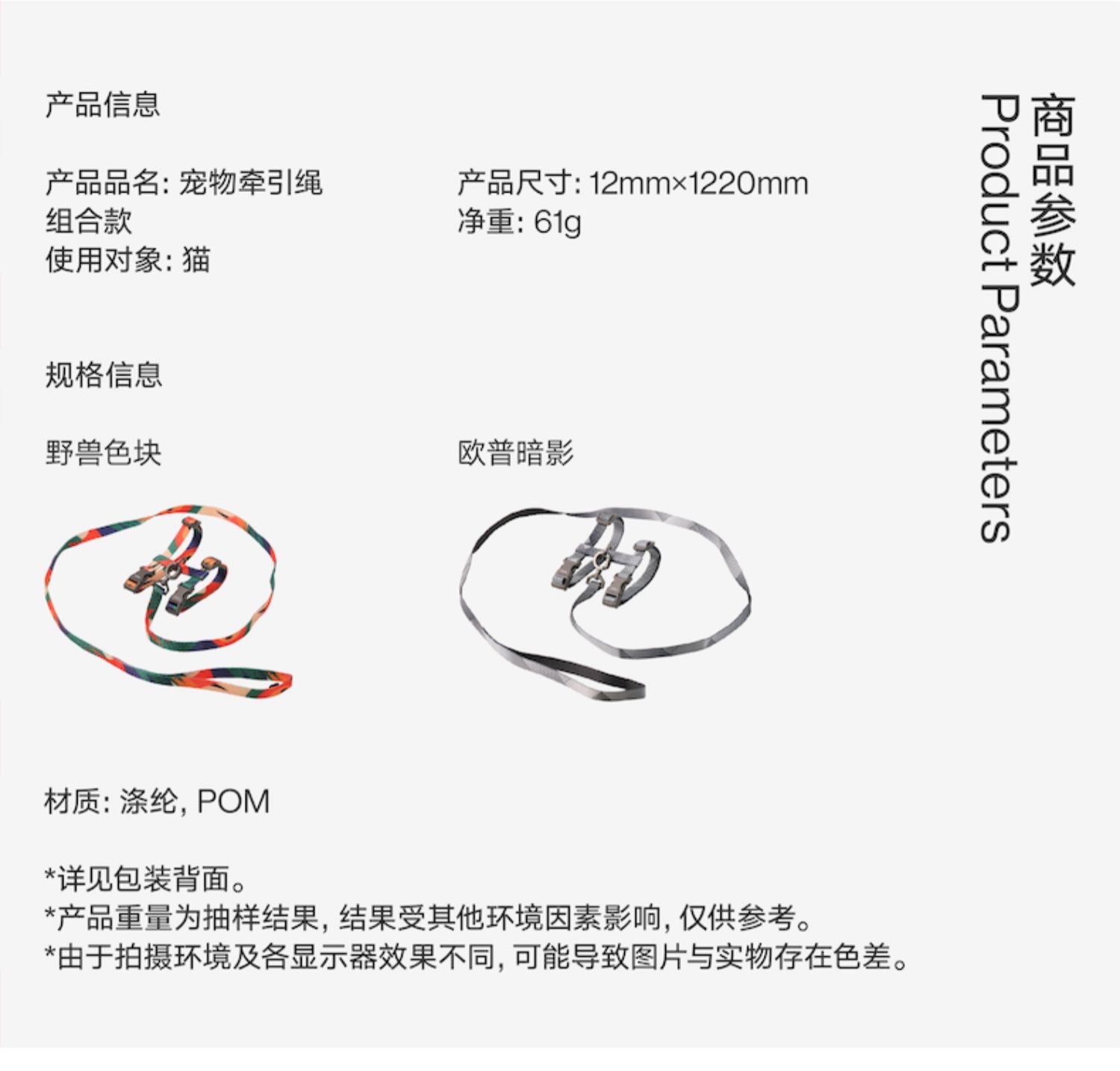 有了这个,就可以很容易地将您的猫带到外面。 H 形背带可牢牢包裹住您的猫,因此它不会轻易松脱。为确保带扣坚固耐用,采用 POM 材料制成。您可以使用三滑调节器自由调节长度或松紧度,使其适合您的猫。涤纶真丝皮带手感柔软,握起来很舒服。有两种颜色可供选择。它们都很别致,穿在你的猫身上看起来很棒。因此,我们的猫背带和皮带套装让您可以带着您的猫出去散步,让您感到自豪。