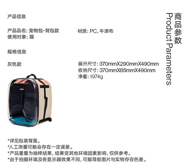 一款超轻、透明且用户友好的 pidan 宠物背包!