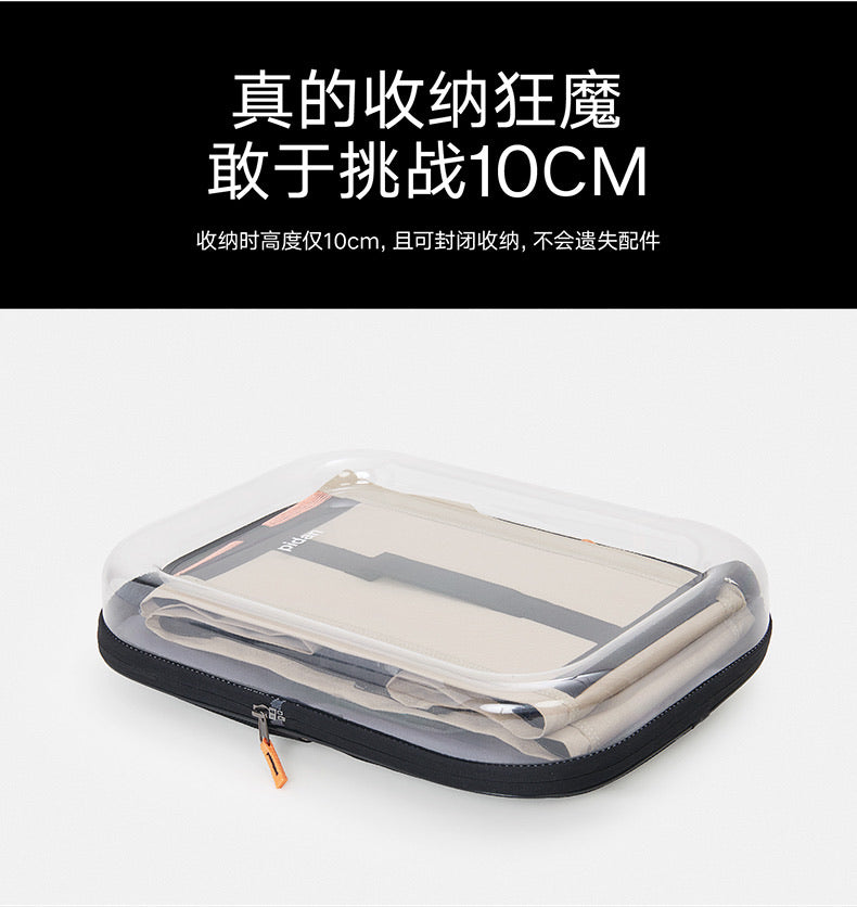 折叠收纳时,高度仅为10cm,封闭式收纳,不会丢失任何零件。