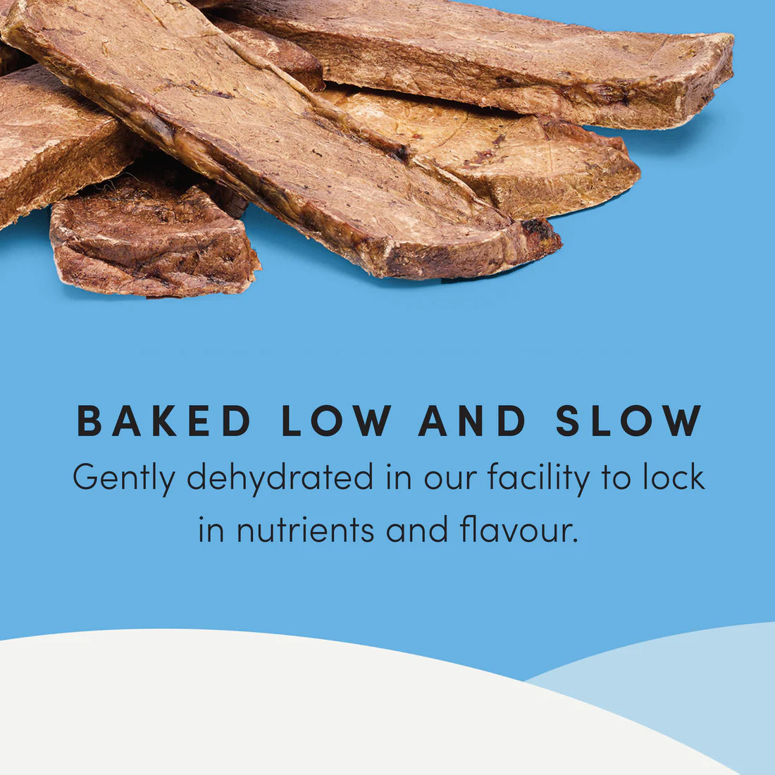 They are baked low & slow to gently dehydrate them while locking in all of the nutrients and flavour. With no artificial colours, flavours or preservatives these all natural Canadian treats have a texture that makes them easy to break apart making them a great option for dogs of all ages and sizes.