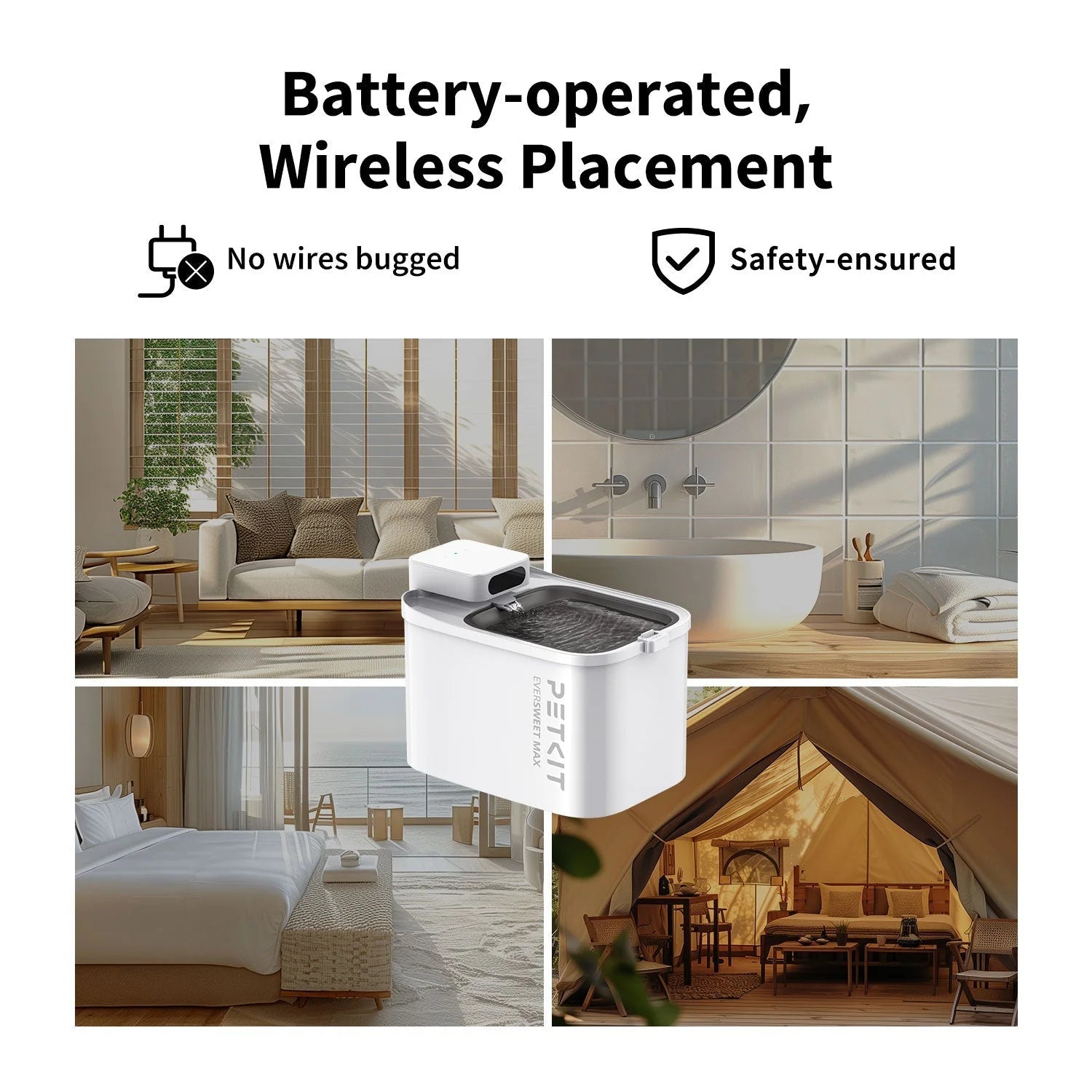 Featuring the battery-operated operation and a battery life of 83 days, you can place the pet water fountain anywhere indoors without the constraints of plugs.