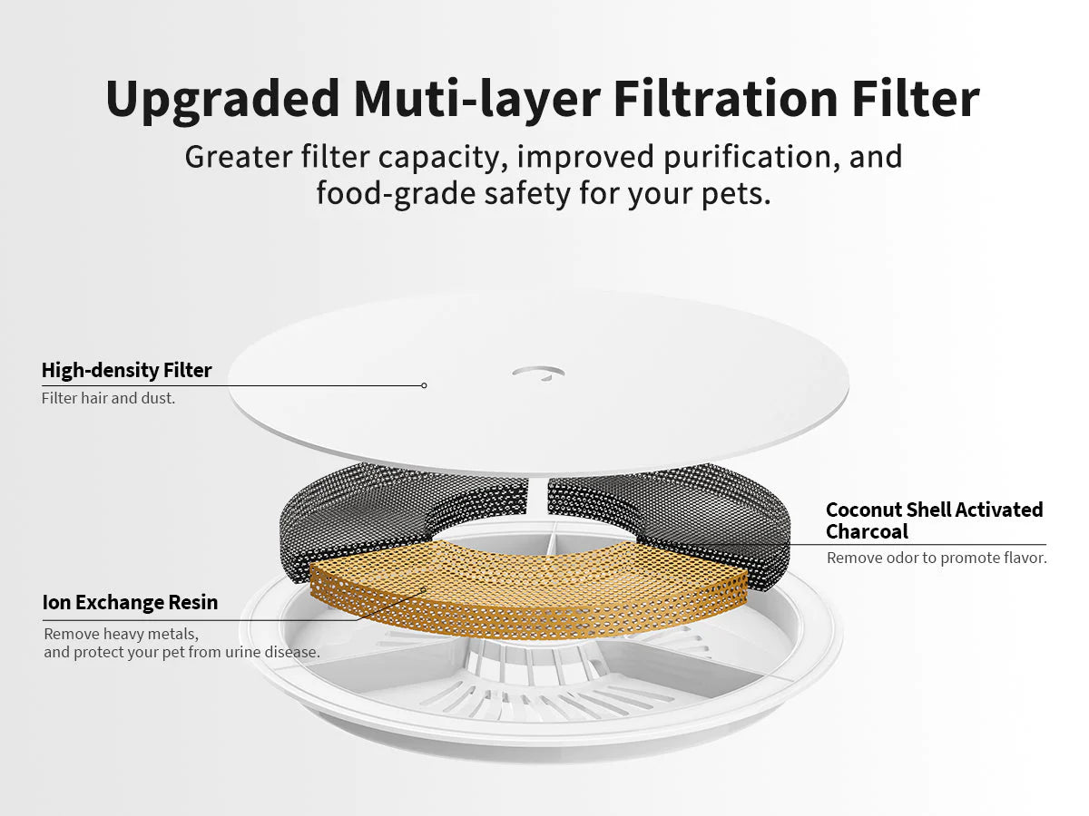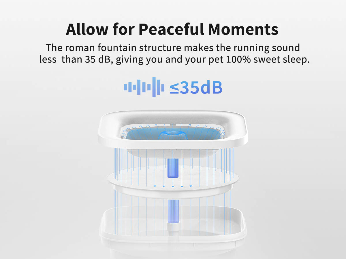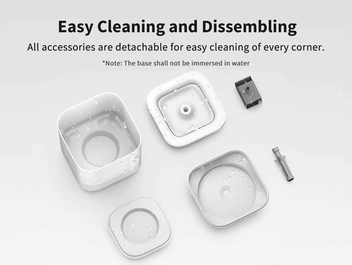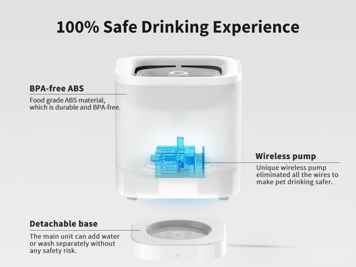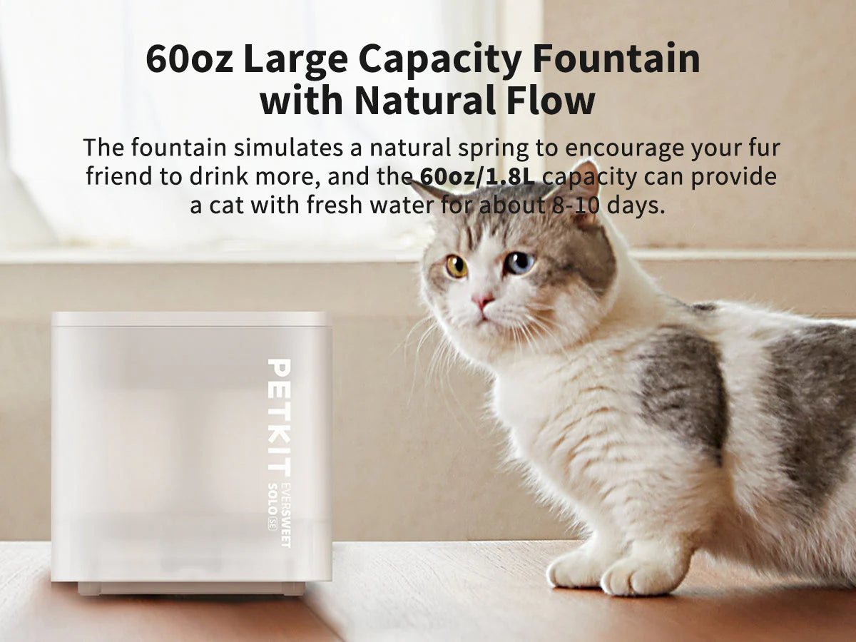 PETKIT Eversweet Solo Water Drinking Fountain simulates a natural spring which encourages your pet to feel relaxed and drink more water! It features a wireless pump, multi-layer filtration system and is ultra quiet to give you and your pet an undisturbed rest. its detachable design makes it easy to clean! The SOLO 's chic and modern design is sure to entice and will fit nicely into any home.